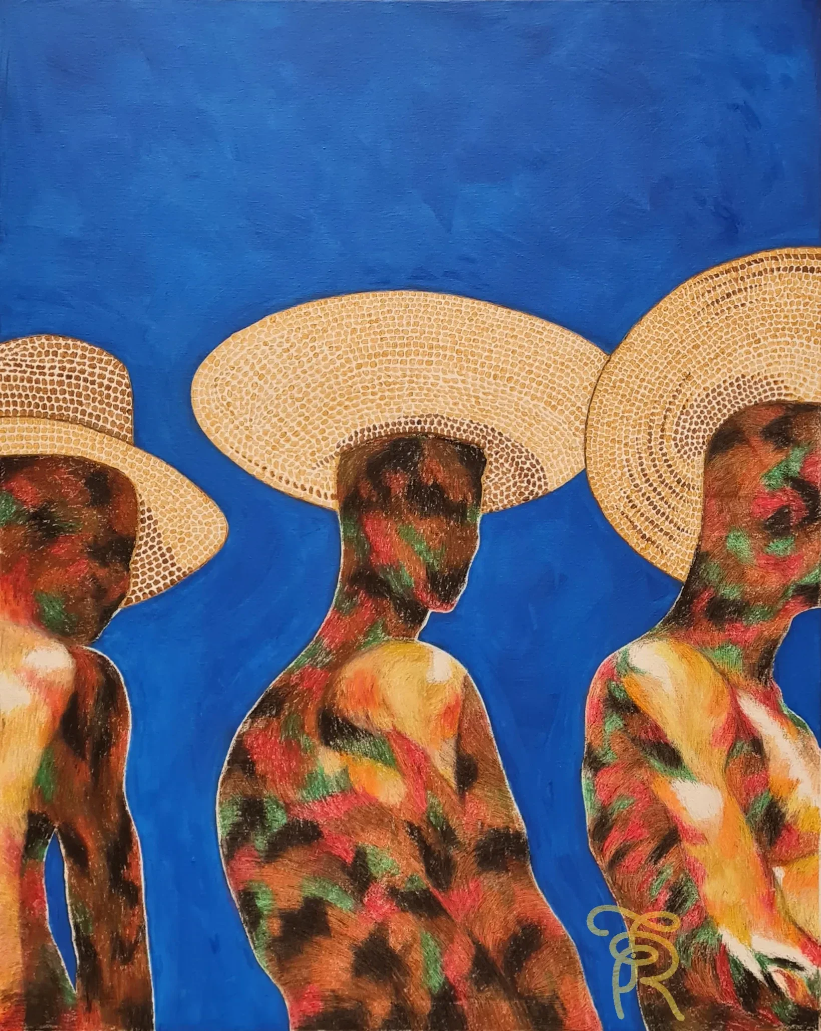 Materiaal: acrylverf, waskrijt en goudverf op doek